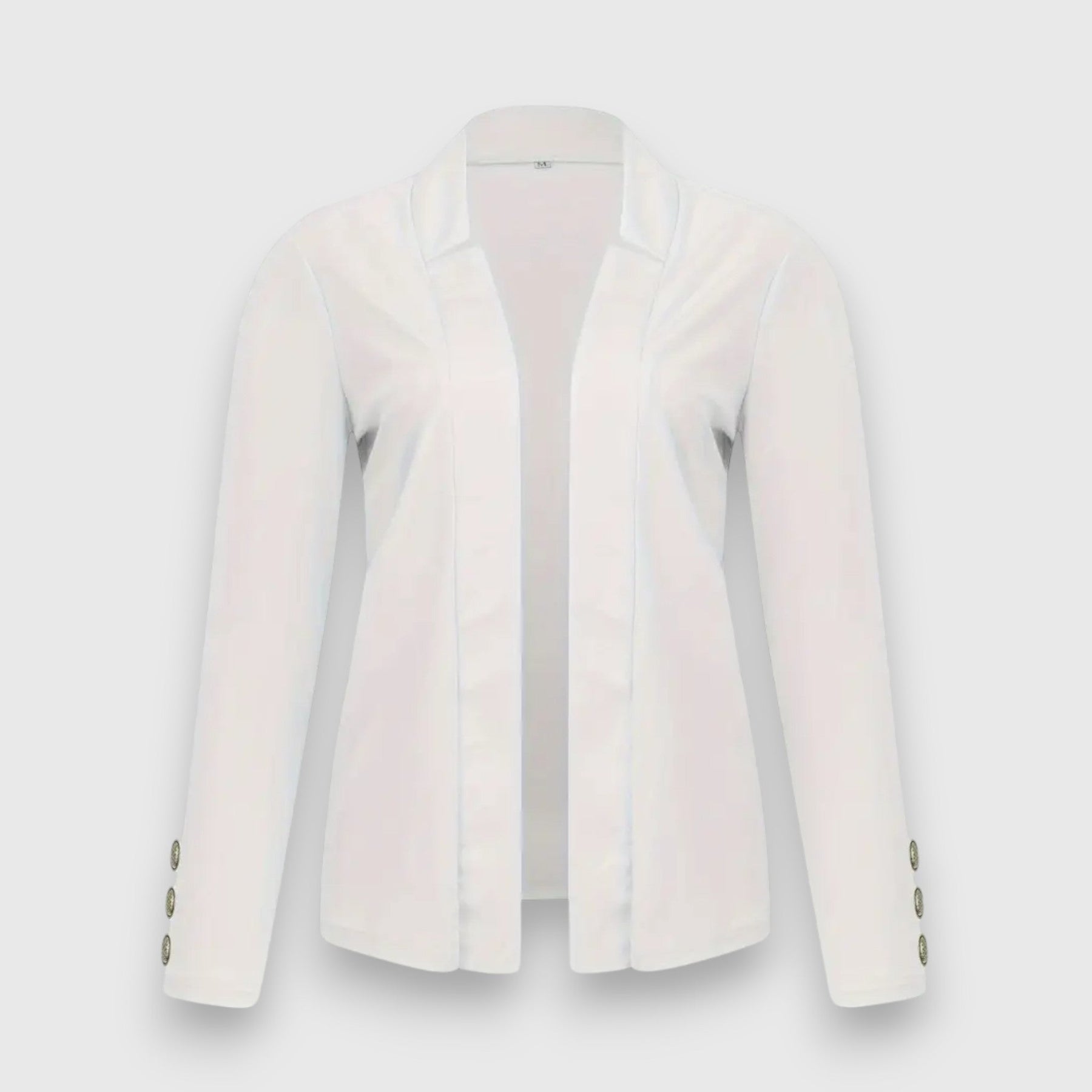 The Aria blazer combines understated elegance with professional style. Its open design with a single button front gives it a modern touch, while the long sleeves and high-quality workmanship ensure optimal comfort. Whether for a formal or casual look, this blazer is a timeless classic for any wardrobe.